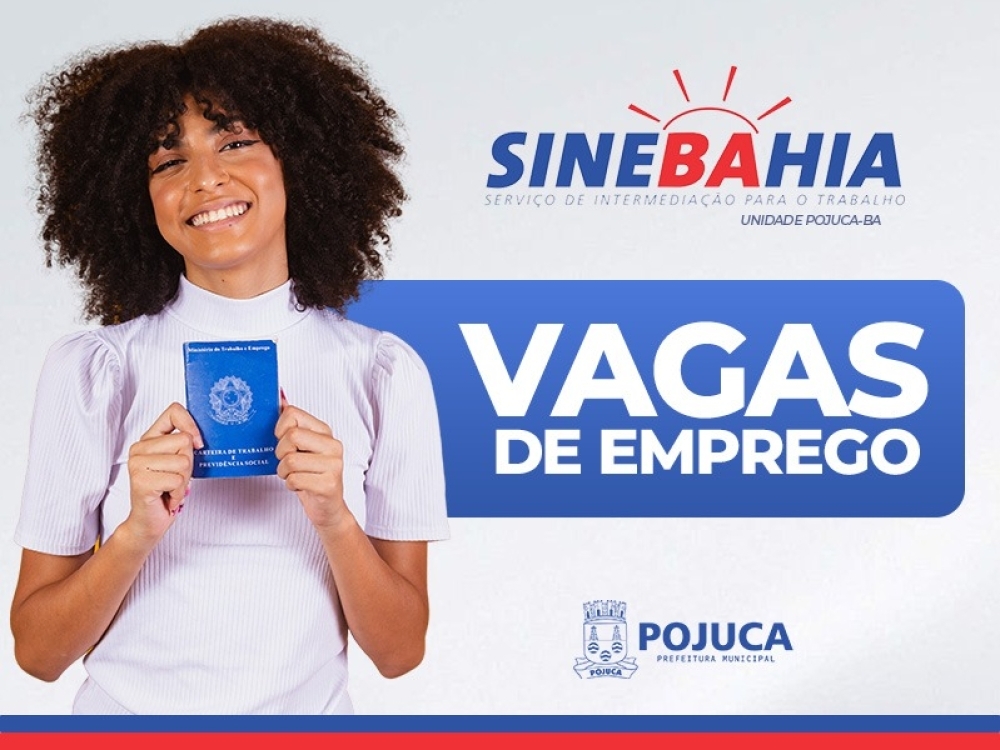 Confiram as vagas disponíveis no Sinebahia – Pojuca para quinta-feira, 12 de fevereiro de 2026.